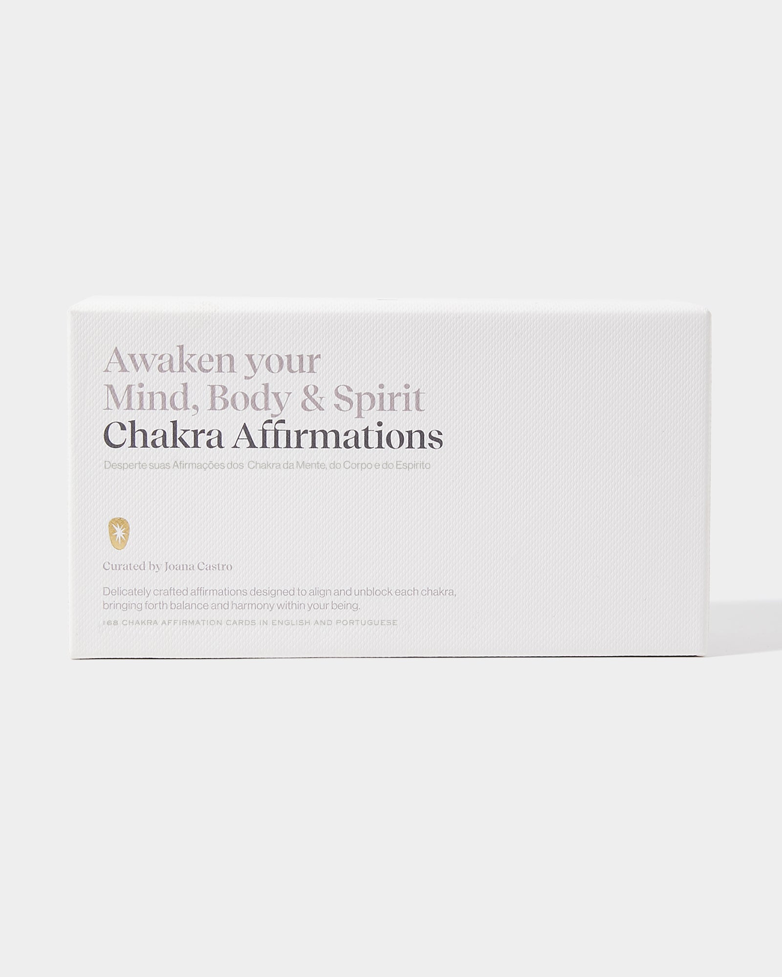 This comprehensive box set includes 168 cards in English & Portuguese, each meticulously crafted to align the seven chakras, offering 22 affirmations for every chakra.